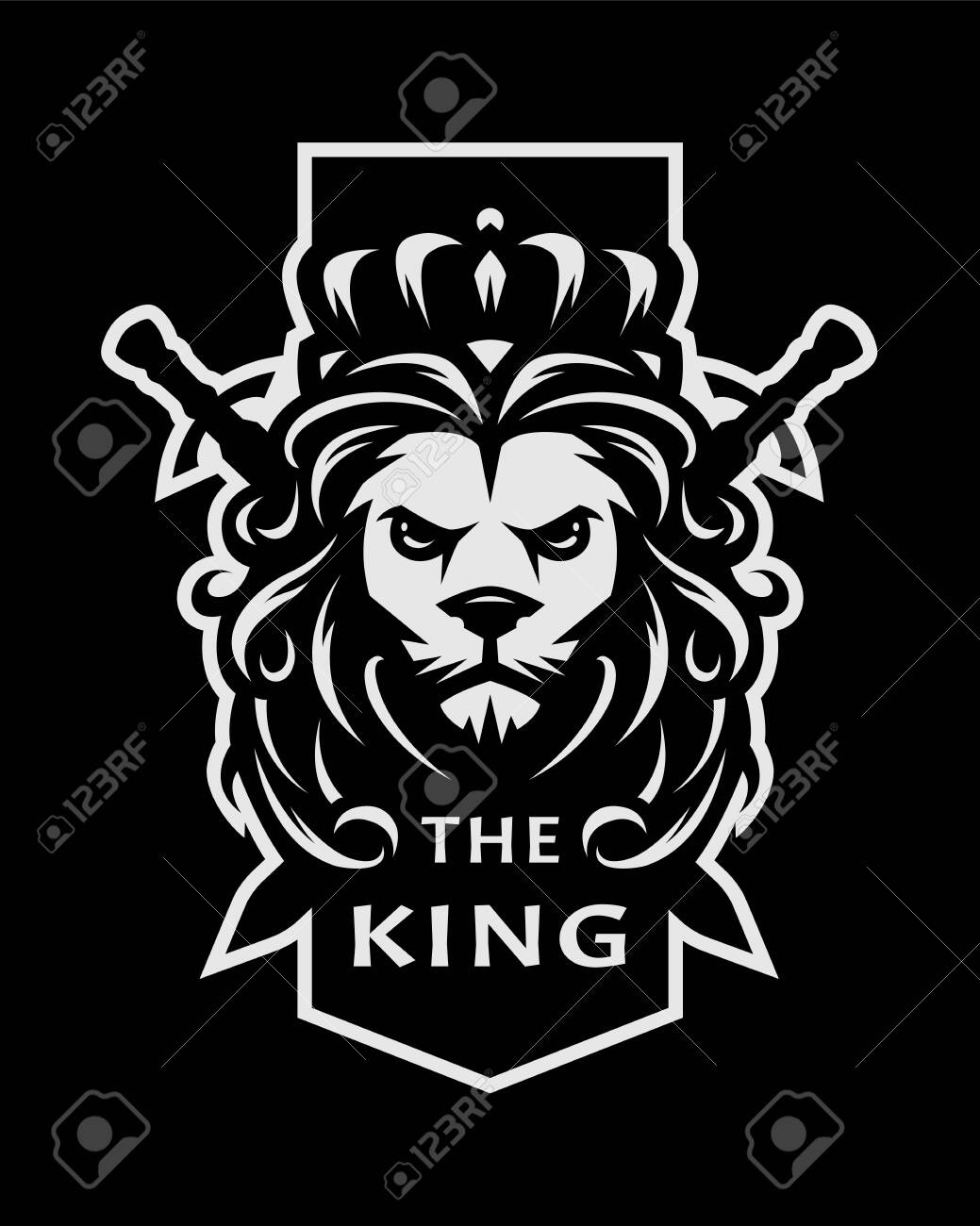 Creative Heraldic Black Lion Head Crown King Swords Shield Logo