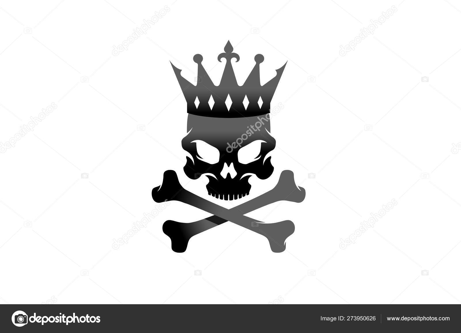 Creative Black Skeleton Bones Crown King Skull Logo Design Vector