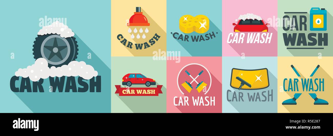 Car Wash Logo Set Flat Set Of Car Wash Vector Logo For Web Design