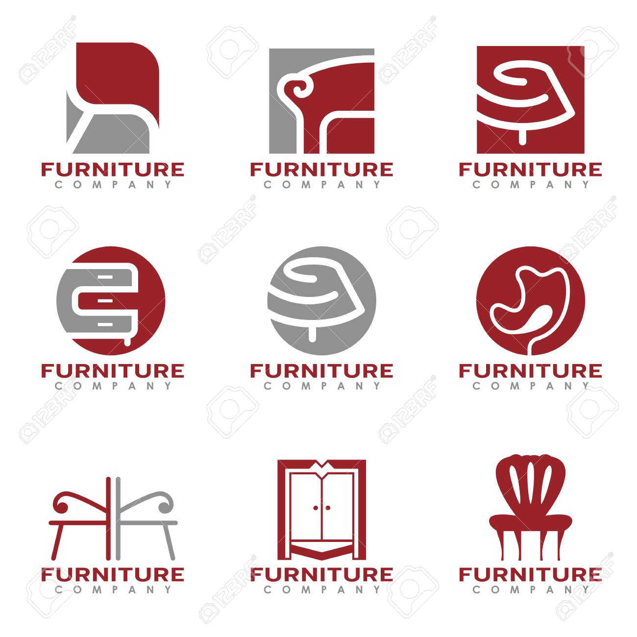 Red And Gray Furniture And Decor Modern Logo Vector Set Design