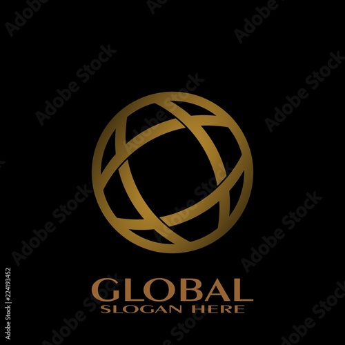 Global Logo Design Gold Isolated On Black Background Buy This