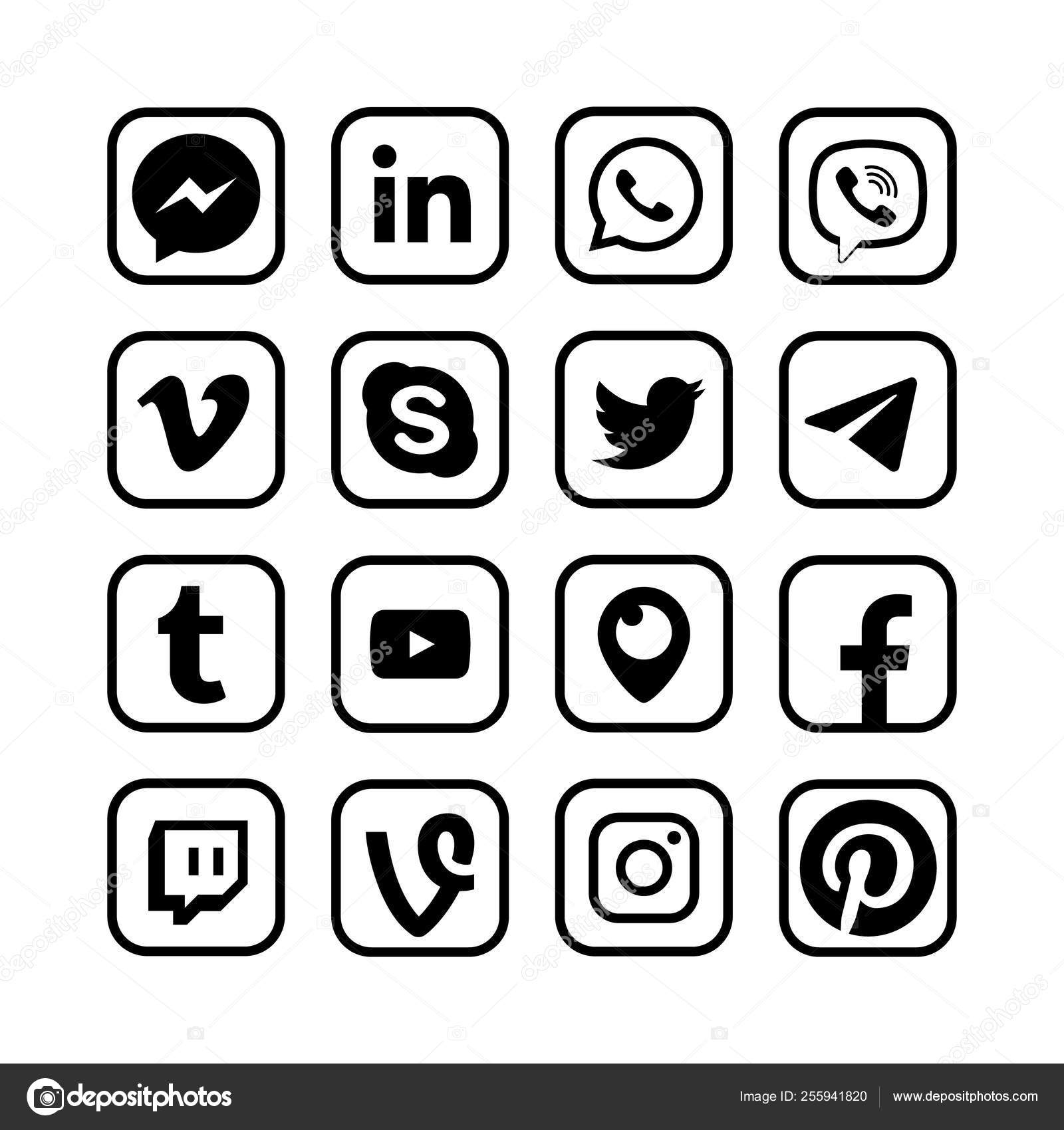 Social Media Icons Popular Messengers Vector Web Network Buttons